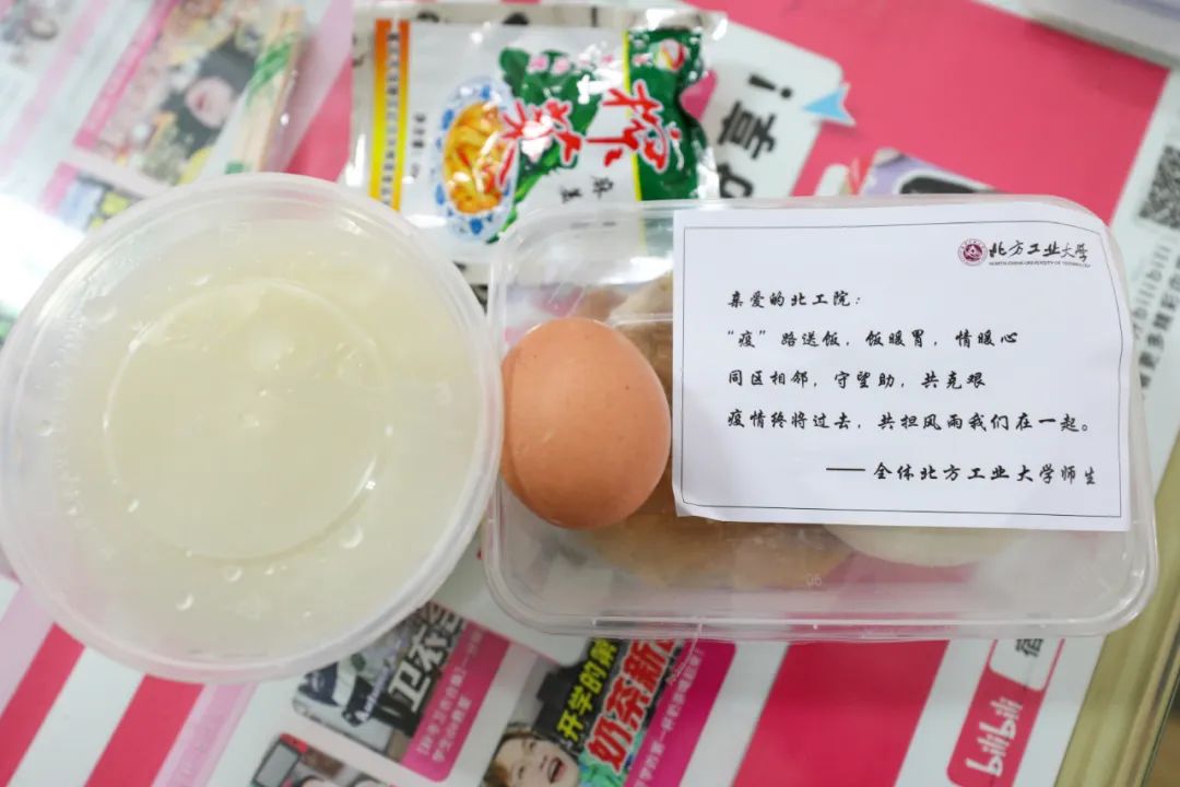 學校實施臨時管控以來,連續收到來自學生家長們的關注問候,兄弟高校也通過捐助愛心餐等方式為北工院師生加油鼓勁。11月19日清晨一輛滿載著愛心早餐的運輸車從北方工業大學出發,1000份愛心早餐出現在北工院學子的餐桌上,青山一道同云雨,兩校夕夕共月明,“疫”路送飯,飯暖胃,情暖心。