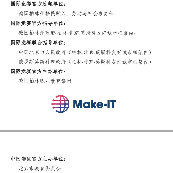 作為數(shù)字化轉(zhuǎn)型的工業(yè)大國,德國、中國和俄羅斯三個(gè)國家在數(shù)字化人才培養(yǎng)和職業(yè)教育領(lǐng)域各具特色。為了更好地促進(jìn)數(shù)字化創(chuàng)新國際合作,推動(dòng)數(shù)字化發(fā)展和職業(yè)技能培養(yǎng)的國際經(jīng)驗(yàn)交流,在德國、中國和俄羅斯三個(gè)國家首都城市相關(guān)政府部門的推動(dòng)下,首屆德國柏林國際數(shù)字化人才創(chuàng)新技能大賽(下文簡(jiǎn)稱國際大賽)在德中俄三個(gè)國家共同開展,國際大賽決賽在德國柏林舉辦。該競(jìng)賽項(xiàng)目為國際賽事,競(jìng)賽的官方發(fā)起單位為德國柏林州移民融入、勞動(dòng)與社會(huì)事務(wù)部。主辦單位為德國柏林職業(yè)教育集團(tuán)。中國賽區(qū)官方主辦單位為北京市教育委員會(huì)。
