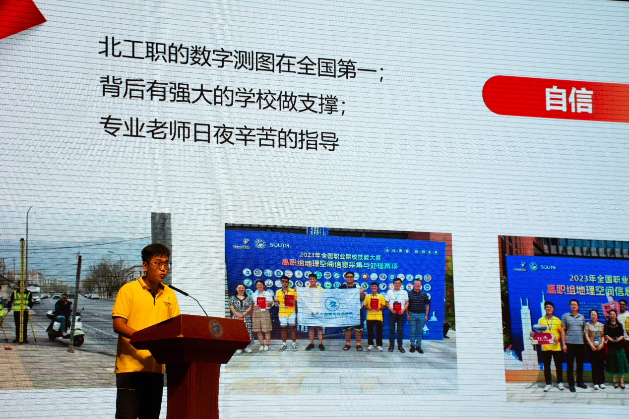 會上,來自工程測量2331班的關喆文同學代表2023級新生作了發言。他代表全體新生感謝建工學院老師們對本次大會的精心組織和對同學們的親切關懷。他表示,經過這場大會同學們感到更加踏實和幸福,這場深刻的交流會讓他明確了在大學生活中學習仍然是第一位,并且要懂得充分利用大學這個舞臺來展現自己。這次活動,不僅為同學們的學習、生活做了向導,使他們能盡快適應新的生活學習環境,而且很大程度上調動了同學們在學習上的積極性,同時給新老生提供了一個相互認識、熟悉的機會,加強了交流,增進了友誼。最后,他表示今后將不斷提高專業知識水平,增強綜合素質,將自身的發展同學校的發展,同首都城市的發展緊密聯系,厚植北工院工匠精神,扣好人生的第一粒扣子。
