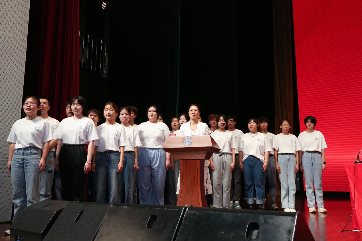 校領導,職能部門負責人,各二級學院院長、黨總支副書記,輔導員、畢業班班主任、全體畢業生共同見證了這特殊而神圣的時刻。黨委副書記、院長安江英,為畢業生上大學最后一堂“大思政課”,囑托大家心懷家國天下、勇擔青春使命。典禮由黨委常委、副院長沈瑩主持。
