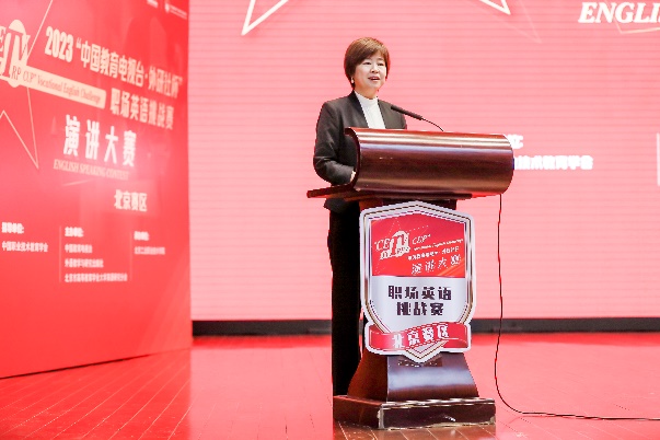 張舍茹教授在致辭中指出,職業教育同仁應與時俱進,立足國際坐標,服務國家戰略,培養高素質、具備跨文化交流能力的人才,聚焦提升青年學子的語言技能、職業精神、人文素養、責任擔當,在新征程中體現新擔當,展現新作為,并鼓勵青年學子做好中國故事的親歷者和講述者,用智慧和熱情將中國故事講出國際范和時代感,在外研社和中國教育電視臺為大家搭建的平臺上盡展風采、賽出水平。李淑靜社長在致辭中提到,在我國與“一帶一路”沿線國家的交流往來日益密切、經濟文化活動開展頻繁、對外語人才的需求更為緊迫的背景下,“中國教育電視臺·外研社杯”職場英語挑戰賽以賽為端,全面落實“崗課賽證”綜合育人要求,旨在選拔高素質、具備跨文化交際能力的技術技能人才,鋪設好“語言互通”這一道路和橋梁。