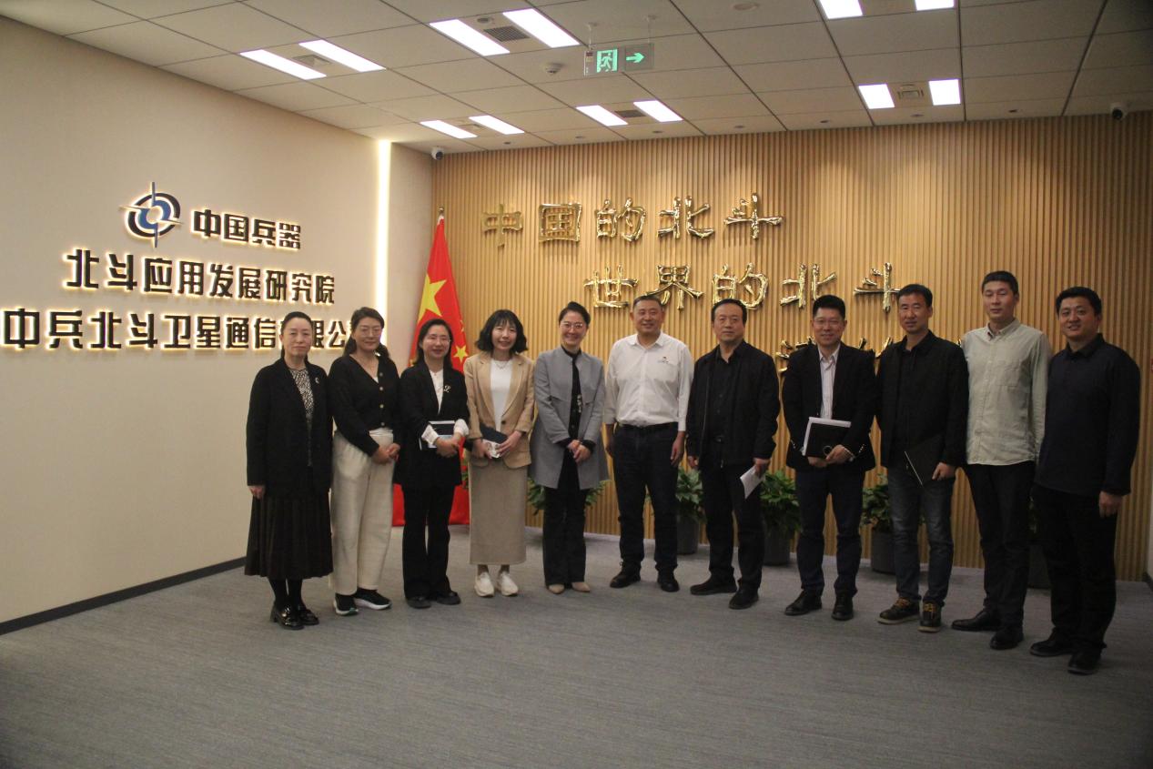 調研組一行抵達中兵北斗衛星通信有限公司后,公司工程部總經理潘穎帶領參觀企業文化展廳,詳細介紹北斗應用開發的核心產品矩陣。