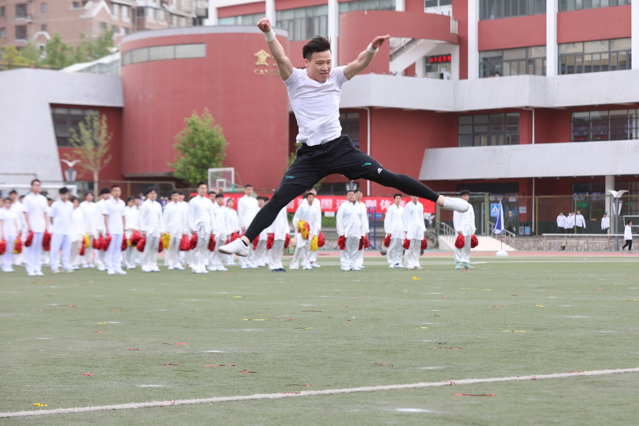 團體操表演中整齊劃一的廣播體操表演展現(xiàn)出青春活力,剛?cè)岵奈湫g(shù)表演展現(xiàn)出傳統(tǒng)文化的獨特意蘊,活力四射的街舞表演、健美操表演展現(xiàn)了當代大學生的青春自信。為了慶祝建黨100周年,今年的團體操表演還伴隨著《東方紅》的音樂旋律呈現(xiàn)了奧運五環(huán)、黨徽、黨旗等圖案,將運動會開幕式氛圍推向高潮。