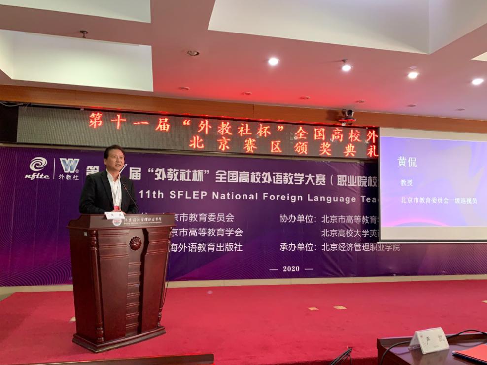 2020年10月25日上午,第十一屆“外教社杯”全國高校外語教學大賽(職業院校組)北京賽區比賽在北京經濟管理職業學院隆重舉行。本次大賽由北京市教育委員會全程指導,北京市高等教育學會、上海外語教育出版社主辦,北京市高等教育學會大學英語研究會、北京高校大學英語教育發展中心協辦。我校基礎教育學院英語教學團隊(王素雅、廉俊穎、趙潔、孫川)以第2名的成績喜獲微課組一等獎。