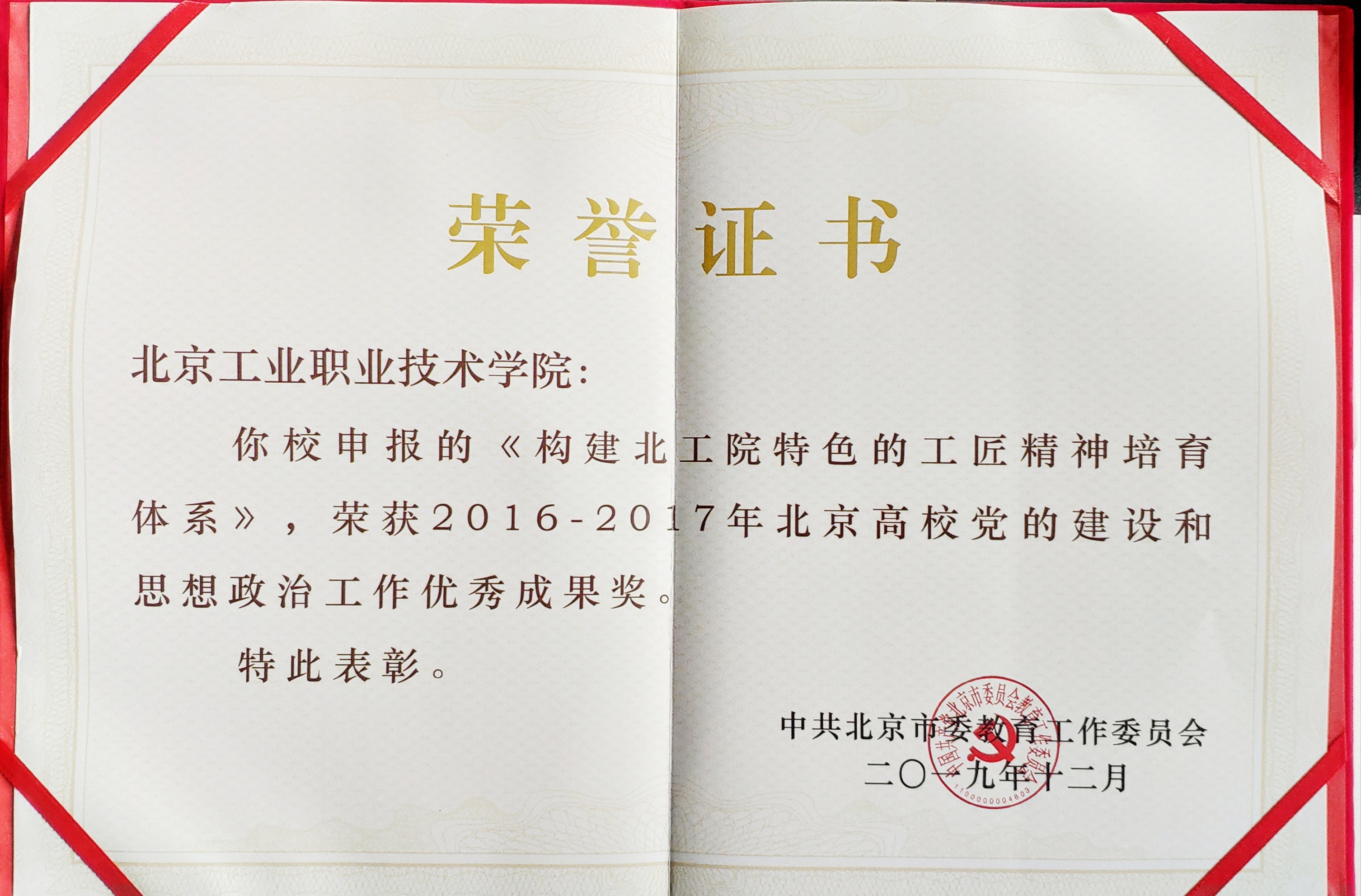日前,北京市委教育工委頒發(fā)了2016—2017年北京高等學(xué)校黨的建設(shè)和思想政治工作優(yōu)秀成果獲獎(jiǎng)證書(shū),我校申報(bào)的《構(gòu)建北工院特色的工匠精神培育體系》榮獲優(yōu)秀成果獎(jiǎng),成為北京高職院校唯一獲此殊榮的院校。 據(jù)悉,北京市委教育工委組織此次評(píng)選,目的是深入學(xué)習(xí)貫徹習(xí)近平新時(shí)代中國(guó)特色社會(huì)主義思想和黨的十九大精神,貫徹落實(shí)全國(guó)及全市教育大會(huì)、宣傳思想工作會(huì)議、高校思想政治工作會(huì)議精神,...
